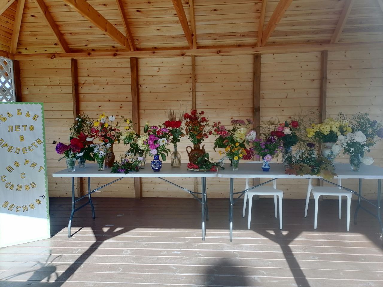 В отделения «Специализированный жилой дом для граждан пожилого возраста и инвалидов» ГБУ "КЦСОН Краснобаковского муниципального округа" с 16 по 19 сентября организована выставка цветов. Как всегда в выставке цветов активное участие приняли не только сотрудники, но и жители, а также соцработники, обслуживающие в отделении граждан пожилого возраста и инвалидов. Все любовались интересными композициями цветов, которые были размещены в прекрасной летней беседке и получили массу приятных эмоций и впечатлений. Хочется поблагодарить всех участников выставки. Желаем жителям и сотрудникам отделения осеннего настроения и душевного тепла!