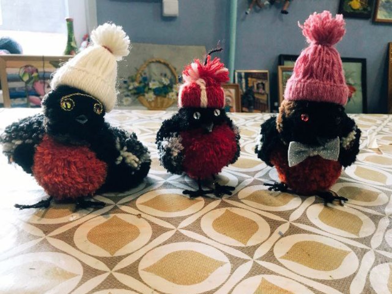 Из чего только рукодельницы не мастерят птиц: из бумаги, ткани, кожи, глины, проволоки, и прочего материала. В отделении дневного пребывания отдыхающие делали снегирей из помпонов. Пенсионеры подбирали нитки, сами вязали помпоны, связывая их плотно друг к дружке. Каждый помпон бережно соединен с другим, превращаясь в настоящее произведение искусства. Занятие получилось интересным, необычным, и снегири даже имеют клички. Знакомьтесь - шоумен - Яшка, Малыш, Петрушка, Аксинья, профессор Гриша, Пижон.